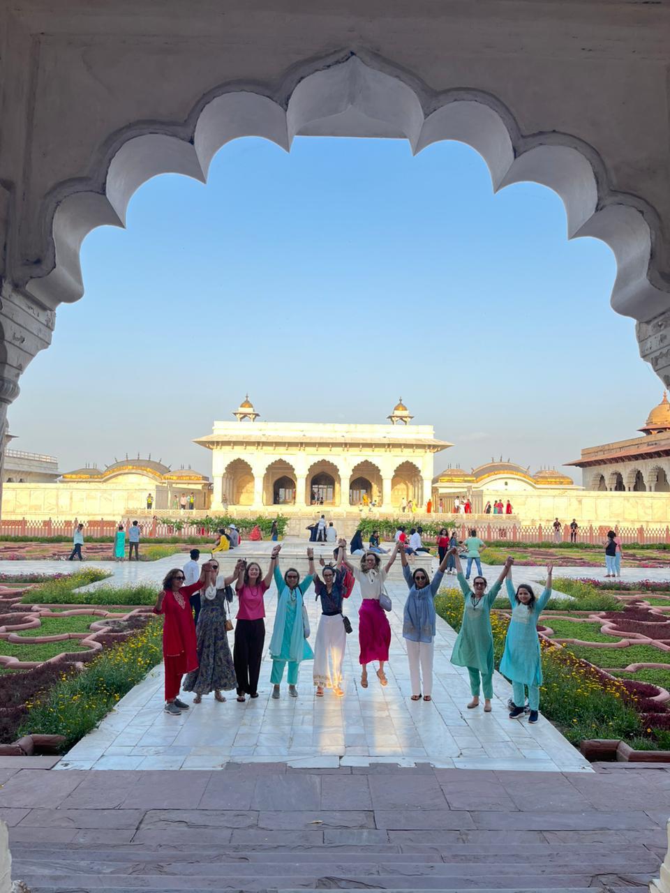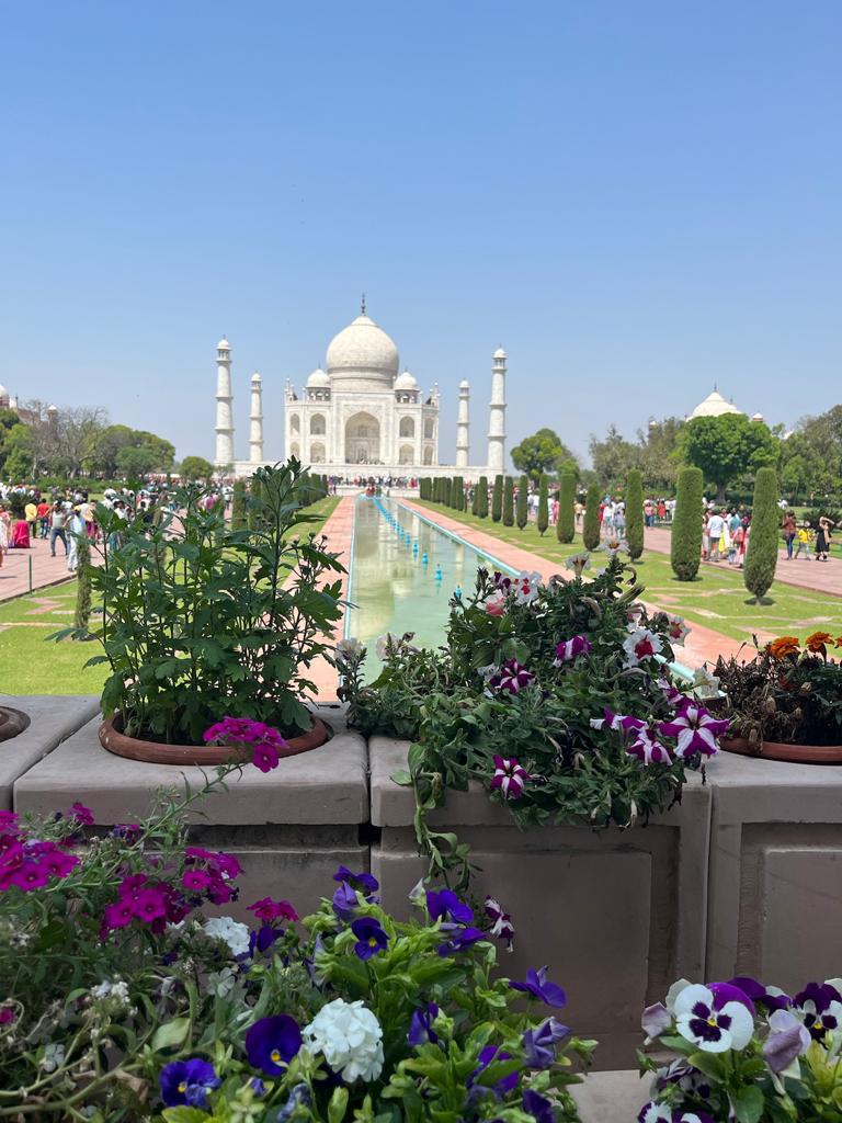 Assim, o Taj Mahal é também conhecido como a maior prova de amor do mundo, contendo inscrições retiradas do Alcorão. É incrustado com pedras semipreciosas, tais como o lápis-lazúli entre outras. A sua cúpula é costurada com fios de ouro. O edifício é flanqueado por duas mesquitas e cercado por quatro minaretes. Supõe-se que o imperador pretendesse fazer uma réplica do Taj Mahal original na outra margem do rio, em mármore preto, mas acabou morto antes do início das obras por um de seus filhos. meu olhar não foi discriminatório e sim pensando nas transformações internas dessa peregrinação que fizemos e nos preparamos para tal.